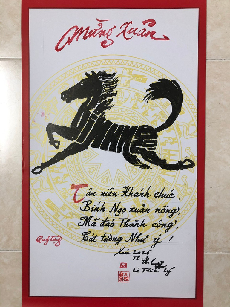 Những ngày đầu xuân, nhiều người tìm đến nhà thư pháp Lê Thiên Lý, Phó Chủ tịch kiêm Tổng Thư ký Hiệp hội Làng nghề thành phố Hải Phòng, Giám đốc Trung tâm Thư pháp Câu đối và Hán-Nôm học Hải Phòng xin chữ về treo đón xuân, mong năm mới an khang, thịnh vượng, hạnh phúc với nhiều khởi sắc "mã đáo thành công".