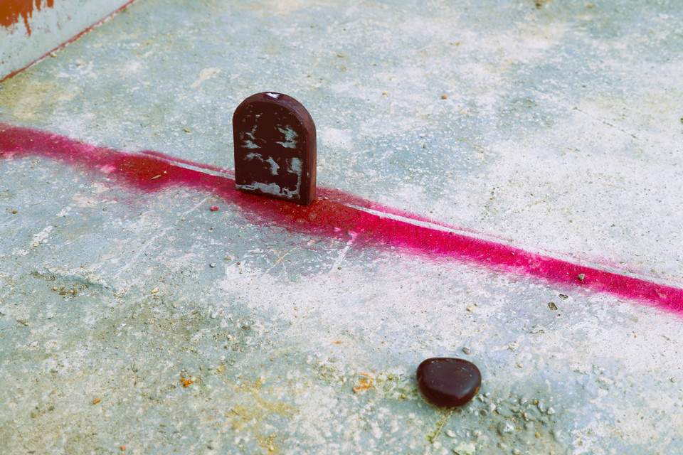 Dùng hạt mặng bắn trúng và đổ các mẩu gỗ hình vảy cá dựng đứng trên vạch kẻ mục tiêu màu đỏ là đích đến của những người tham gia chơi trò Tó mặng. (Ảnh: Xuân Tiến/ TTXVN)