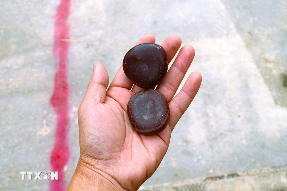 Hạt “mặng”- linh hồn của trò chơi Tó mặng, là hạt của một loại trái cây trong rừng già. (Ảnh: Xuân Tiến/TTXVN)