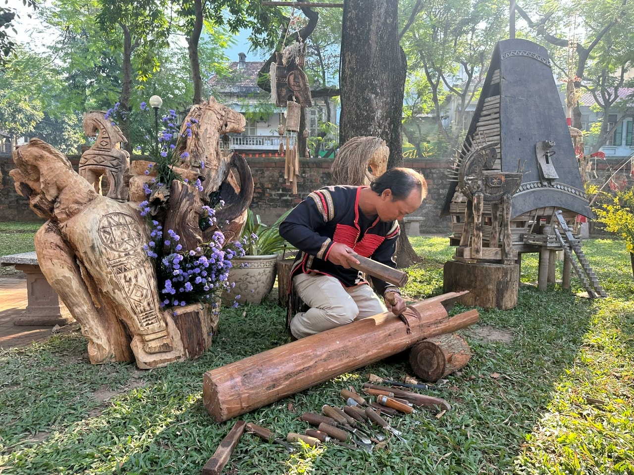 Chia sẻ về không gian trưng bày, nhà nghiên cứu văn hóa Tây Nguyên Đặng Minh Tâm cho biết, các tác phẩm điêu khắc được giới thiệu mang vẻ thô mộc, thể hiện tinh thần, tính cách và văn hóa của người Tây Nguyên. Hoàng Lân