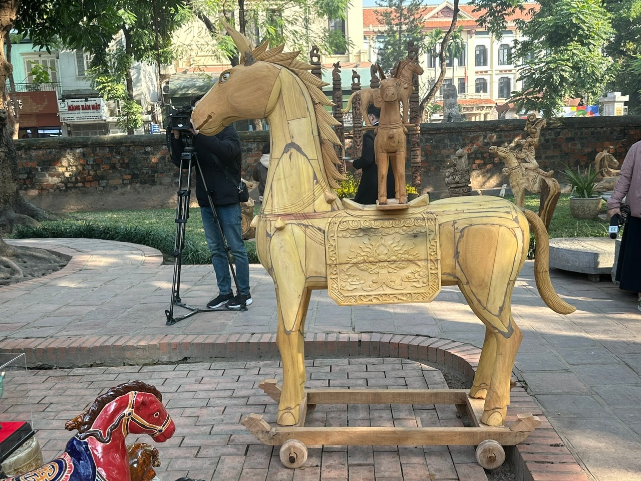 Phát biểu tại trưng bày, Giám đốc Trung tâm Văn hóa, khoa học Văn Miếu – Quốc Tử Giám Lê Xuân Kiêu cho biết, trong tâm thức và văn hóa Việt Nam, ngựa là biểu tượng của sức mạnh, lòng trung thành, sự bền bỉ và tinh thần tiến bước không ngừng. Gắn liền với những cuộc hành trình dài trong lịch sử và đời sống, hình tượng ngựa thường được xem như biểu trưng cho ý chí bền bỉ, khát vọng vươn xa và tinh thần không ngừng học hỏi của con người. Đặc biệt, trong năm Bính Ngọ – năm của hành động và chuyển động mạnh mẽ – hình tượng ngựa càng trở nên giàu ý nghĩa, gợi nhắc nội lực, sự bứt phá và tinh thần vượt lên trong năm mới. Ảnh: Hoàng Lân.