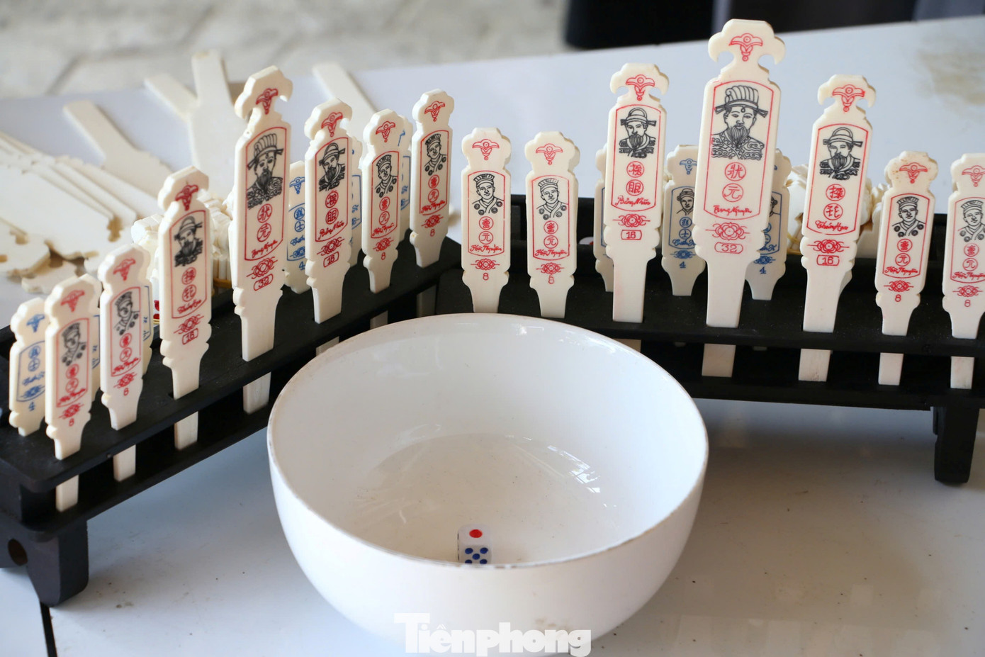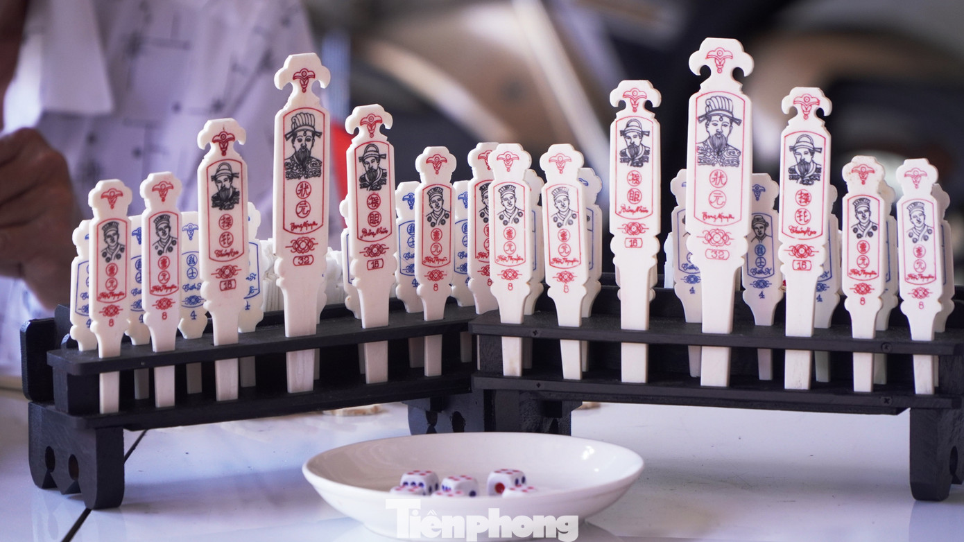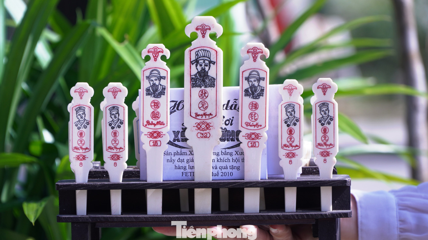 “Thẻ lớn nhất, đẹp nhất dành cho Trạng nguyên; phần xương nhỏ hơn làm Thám hoa, Hội nguyên, Tiến sĩ, Tú tài…”, ông Tố chia sẻ. Người làm nghề không chỉ cần đôi tay khéo léo mà còn phải nắm rõ cấu trúc bộ thẻ và ý nghĩa văn hóa phía sau từng quân xăm.