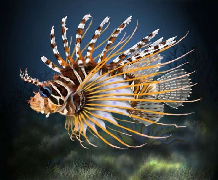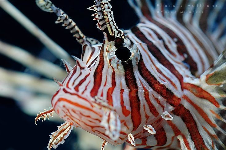 Vẻ ngoài bắt mắt nhưng nguy hiểm. Cá sư tử có các tia vây cứng chứa nọc độc, vừa là công cụ phòng vệ, vừa khiến chúng trở thành loài cá nguy hiểm. Ảnh: Pinterest.