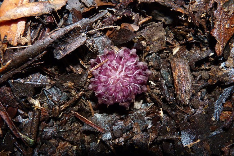 Nhờ ký sinh hút chất dinh dưỡng và carbon cần thiết thông qua các loài thực vật khác, lan Rhizanthella gardneri có thể phát triển và ra hoa. Ảnh: csiro.au.