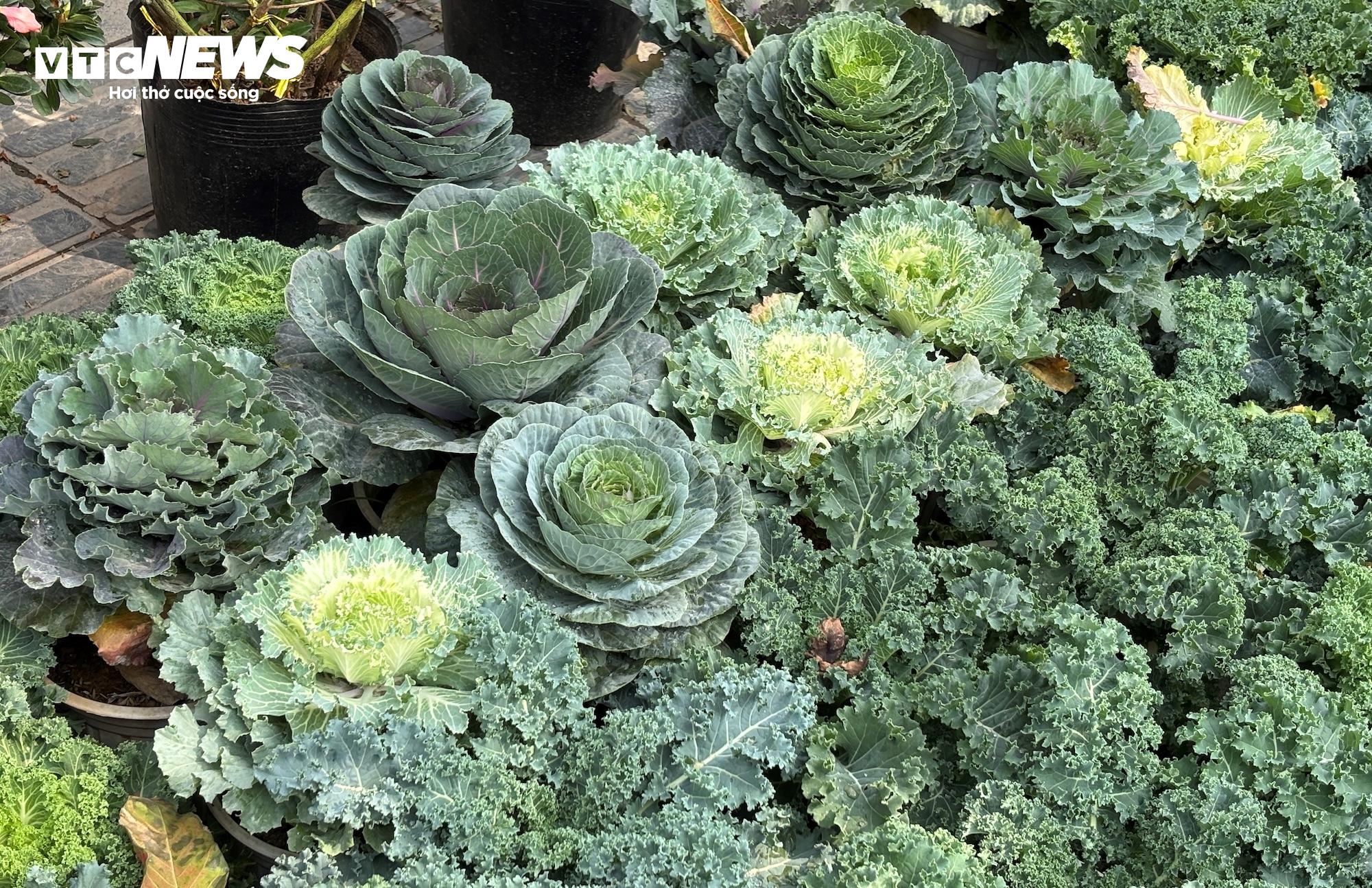 Rau cải chơi Tết khá đa dạng, từ cải xoăn lá xoăn tít như những bông hoa xanh, cải hoa hồng với lá xếp lớp hồng hào, đến bắp cải tròn trịa như quả cầu xanh mướt - tất cả đều được "biến hình" thành những món đồ trang trí bắt măt. "Đây là loại cây cảnh Tết độc lạ, rất được khách hàng ưa chuộng vì vừa đẹp, vừa rẻ lại có thể ăn được", một người bán giới thiệu.