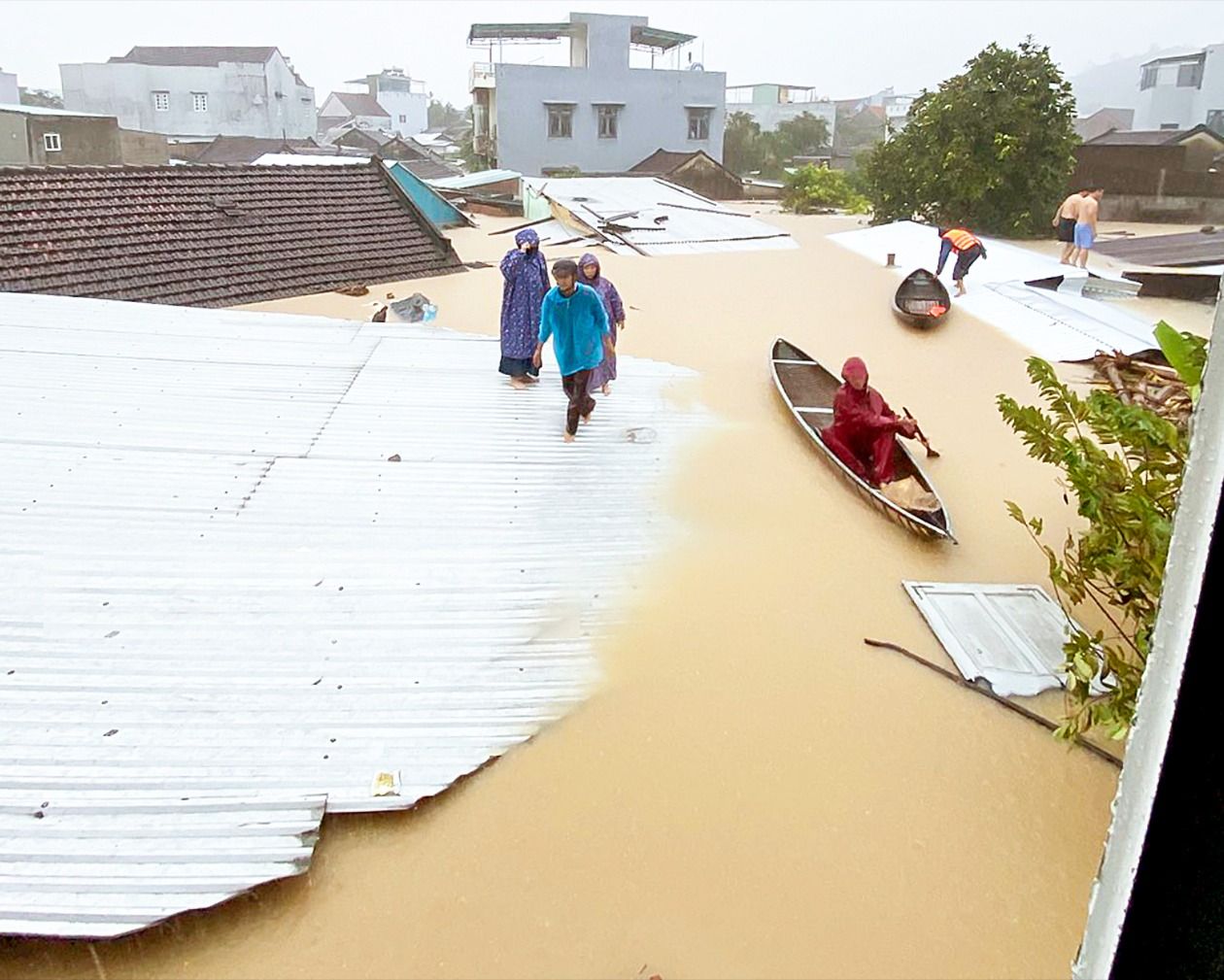 Trong khi đó, tại lưu vực sông Vu Gia - Thu Bồn (TP Đà Nẵng), mưa lớn thượng nguồn kết hợp điều tiết hồ chứa tiếp tục gây ngập sâu. Sáng 19-11, một ô tô 7 chỗ chở 2 người bị nước xiết làm chết máy và trôi trên đoạn ĐT611 qua Nông Sơn. Lực lượng phòng thủ dân sự xã phải dùng xuồng máy tiếp cận và kéo xe lên bờ kịp thời.