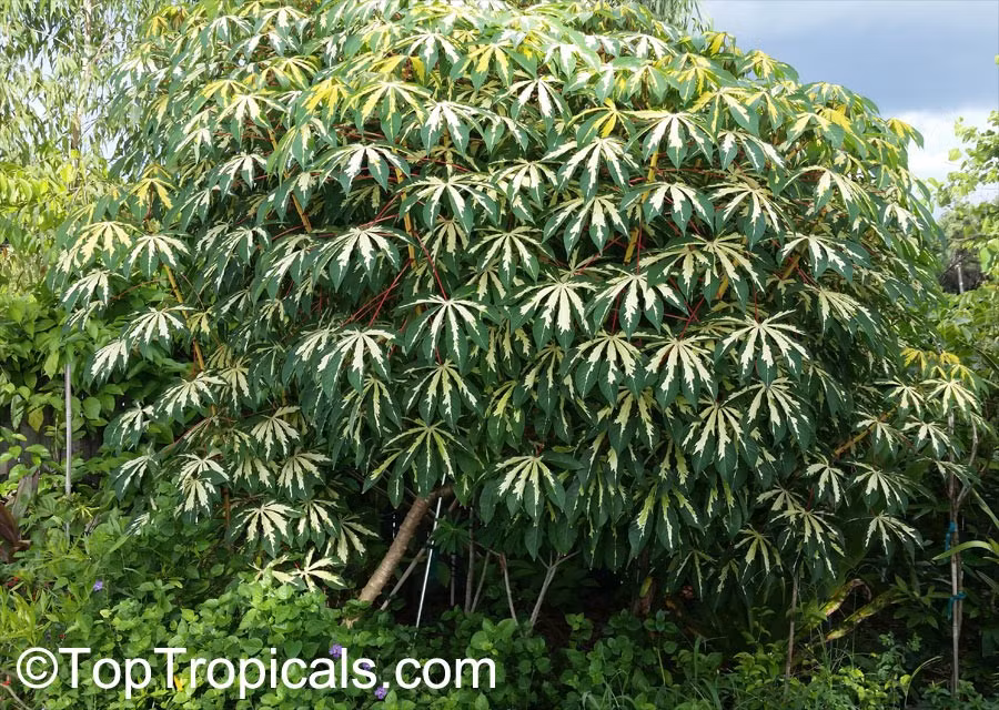 Có thể trồng bằng cành thay vì hạt. Sắn thường được nhân giống bằng cách giâm cành, thay vì gieo hạt. Phương pháp này giúp cây phát triển nhanh và giữ được đặc tính của cây mẹ, đồng thời thuận tiện cho nông dân trong canh tác. Ảnh: toptropicals.com.