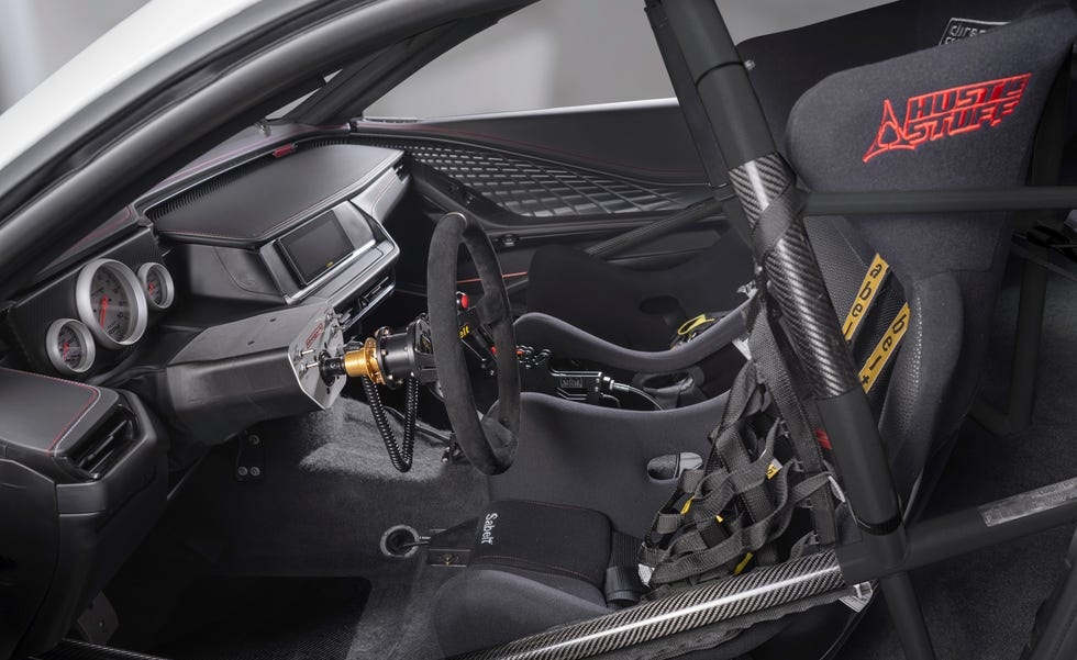 Nội thất được tối giản cho mục đích đua xe, trang bị khung chống lật và ghế đua Sabelt.