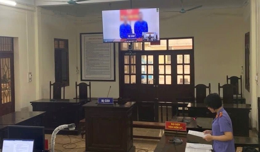 Phiên tòa xét xử trực tuyến đối với hai bị cáo (ảnh: Minh Nguyên).