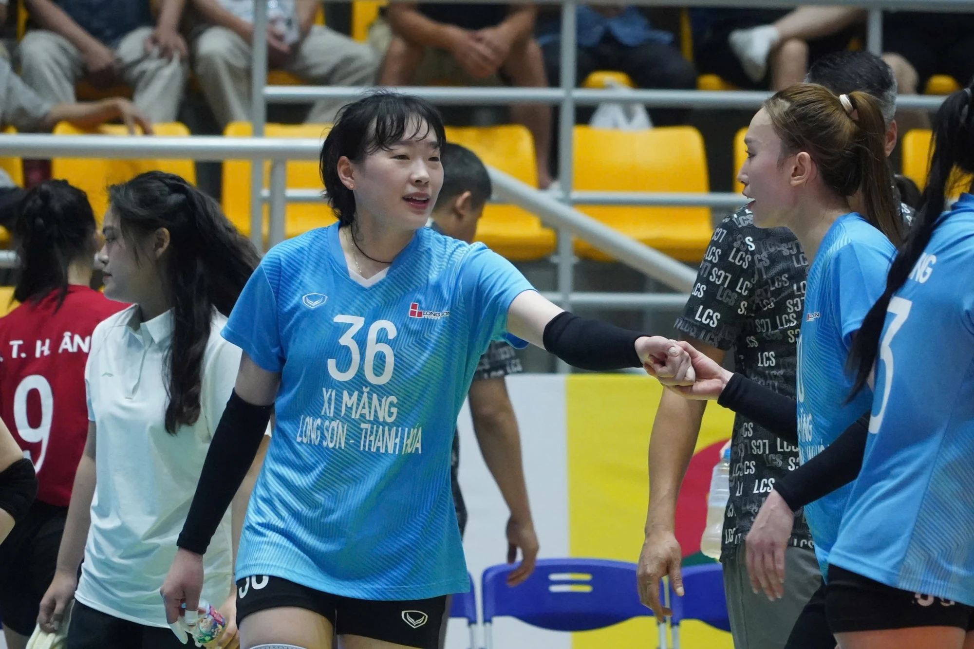 Ngoại binh Cai Xiaoqing (số 36) vẫn là cầu thủ ghi nhiều điểm nhất cho XMLS Thanh Hóa trong trận đấu này.