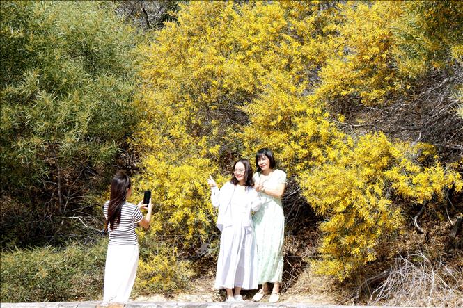 Không rực rỡ như những mùa hoa nổi tiếng khác, sắc vàng của hoa tràm hiện lên nhẹ nhàng, trải dài bất tận giữa nền trời xanh và triền cát mênh mang khiến nhiều du khách mê mẩn. Từ khoảng 9 giờ sáng mỗi ngày, du khách đã bắt đầu tìm đến để “săn” những bức ảnh đẹp.