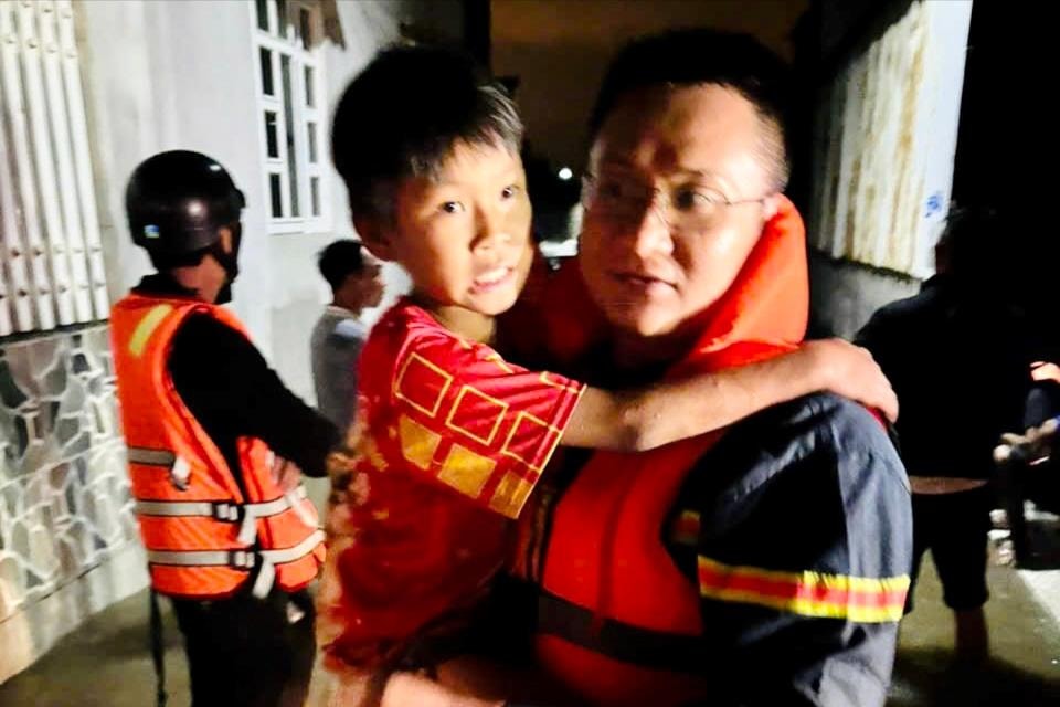 Trẻ nhỏ được lực lượng cứu hộ đưa đến nơi an toàn