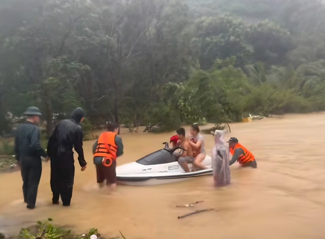 Nhóm tình nguyện viên Bình Thuận mang theo mô tô nước, xuồng máy đến hỗ trợ người dân tỉnh Đắk Lắk. Ảnh: Hà Nguyễn