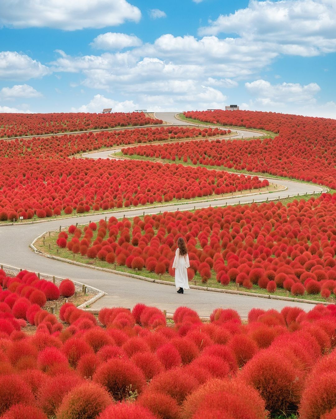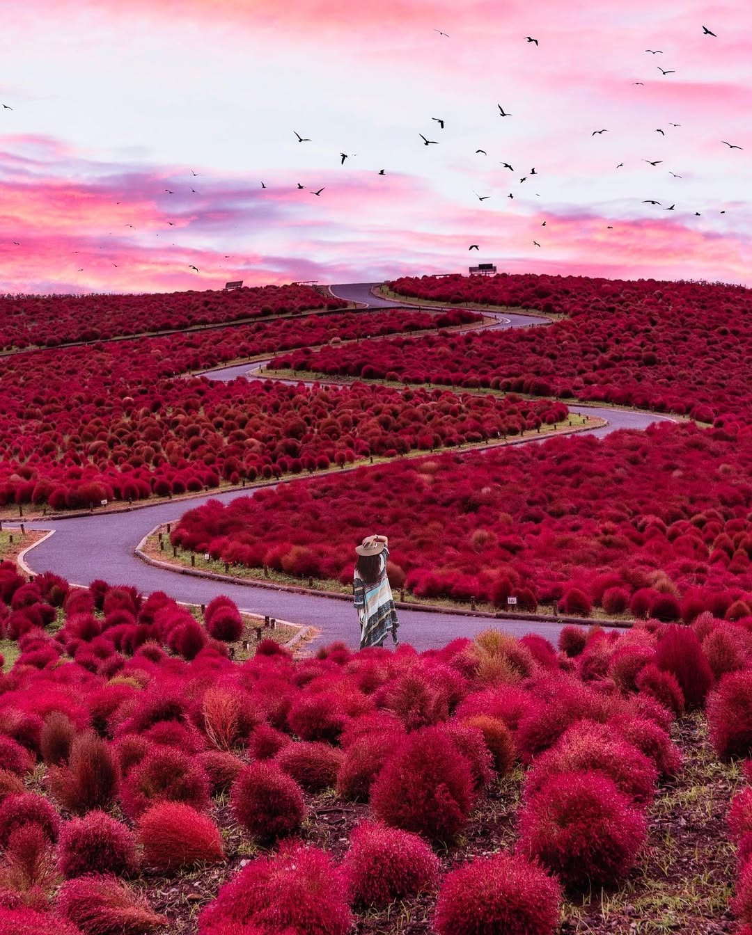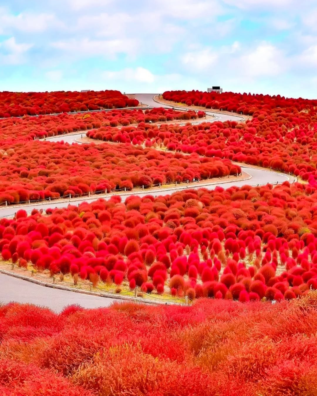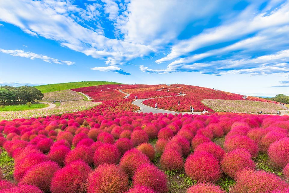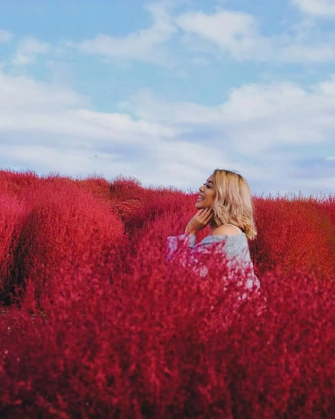 Không quá lời khi nói rằng, đồi Kochia ở Hitachi Seaside là một trong những cảnh quan “gây sốt” mạng xã hội nhất mỗi mùa thu. Những khóm cỏ tròn trịa, đỏ rực trong nắng chiều trở thành phông nền hoàn hảo cho mọi bức hình. Với nhiều du khách quốc tế, khoảnh khắc đứng giữa biển cỏ đỏ trong tiết trời se lạnh mang lại cảm giác vừa lãng mạn vừa bình yên – trải nghiệm khó tìm thấy ở nơi nào khác. Ảnh dulichviet