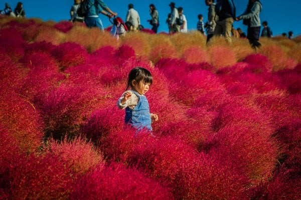 Không chỉ đơn thuần là ngắm cảnh, du khách đến Hitachi Seaside còn có thể tản bộ trên những lối đi uốn lượn quanh thảm Kochia, lưu giữ khoảnh khắc mùa thu rực rỡ trong từng khung hình. Ảnh dulichviet