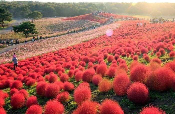 Nơi ngắm Kochia nổi tiếng nhất chính là công viên Hitachi Seaside thuộc tỉnh Ibaraki, cách thủ đô Tokyo khoảng hai giờ đi tàu. Ảnh dulichviet