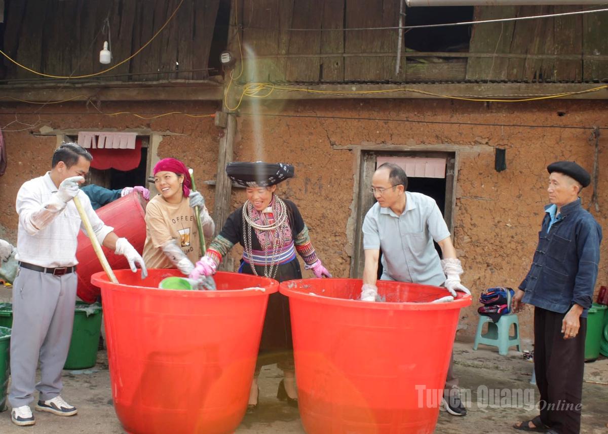 Đồng chí Nguyễn Văn Chinh, Phó Bí thư Đảng ủy, Chủ tịch UBND xã cho biết: Tùy thuộc vào điều kiện thực tế của từng thôn, bản, xã đã tổ chức các lớp tập huấn cải tạo vườn tạp, chuyển đổi cơ cấu cây trồng, nâng cao hiệu quả kinh tế. Từ tháng 8 đến nay, xã đã tổ chức mở lớp dạy nghề trồng rau an toàn tại thôn Há Đề, phát động nhân rộng diện tích trồng chè Shan tuyết cổ thụ, hướng dẫn kỹ thuật ủ cây chàm cho bà con thôn Tráng Chá Phìn, phát động trồng cây chàm nhuộm vải và khôi phục nghề nhuộm chàm truyền thống... Đây là những việc làm thiết thực nhằm khôi phục, bảo tồn, phát triển nghề truyền thống gắn với xây dựng vùng nguyên liệu tại chỗ. Lãnh đạo xã xuống trực tiếp các thôn trao đổi, hướng dẫn bà con các quy trình trồng cây, nhuộm chàm... Việc “cùng làm” với bà con đã xóa khoảng cách giữa cán bộ với nhân dân, tạo dựng niềm tin vững chắc vào sự lãnh đạo của cấp ủy, chính quyền địa phương theo đúng tinh thần “nghe dân nói, nói dân hiểu, làm dân tin”.