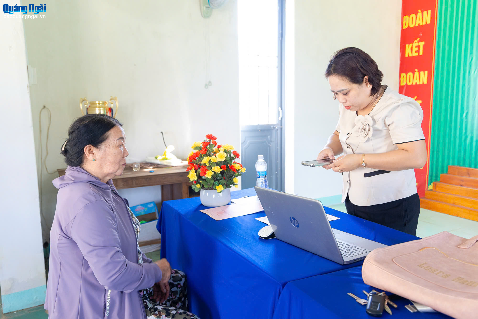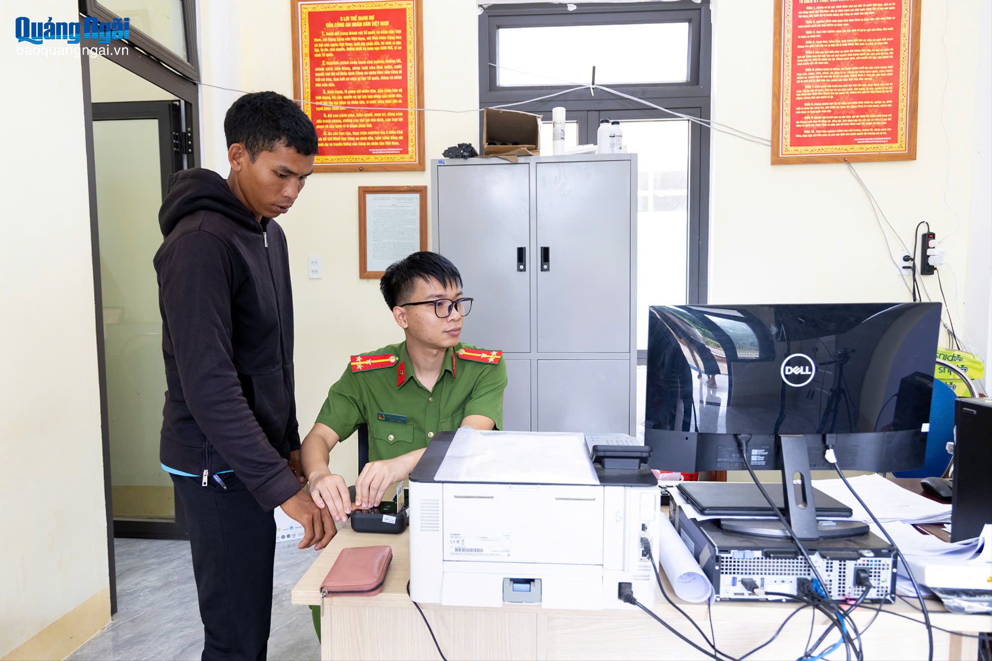 Công an xã Sa Bình thực hiện cấp đổi căn cước công dân có gắn chip cho người dân trên địa bàn. ẢNH: NGUYỄN BAN