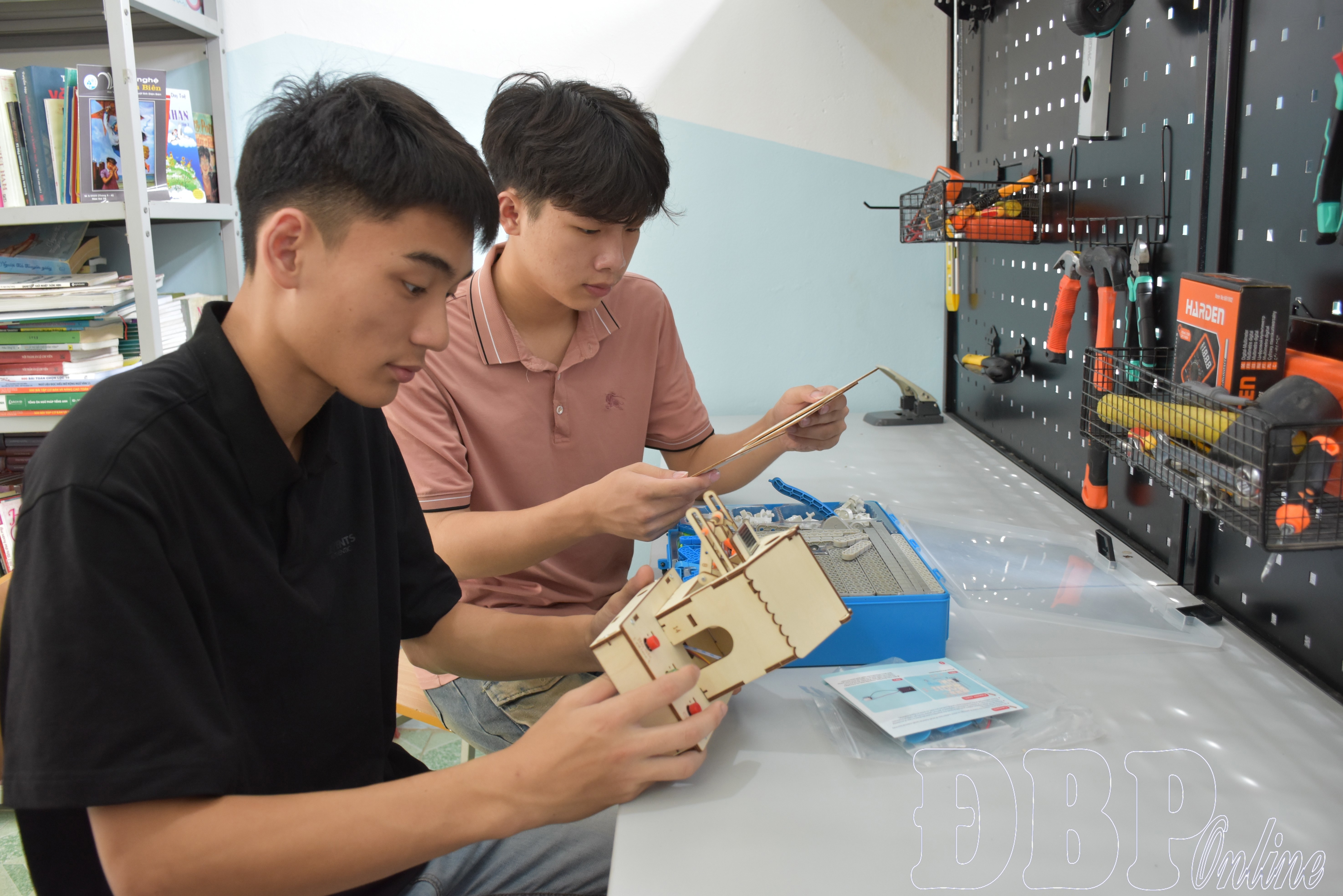 Học sinh Trường Phổ thông Dân tộc Nội trú THPT tỉnh say mê khám phá học cụ tại Thư viện Công nghệ STEAM Hub.