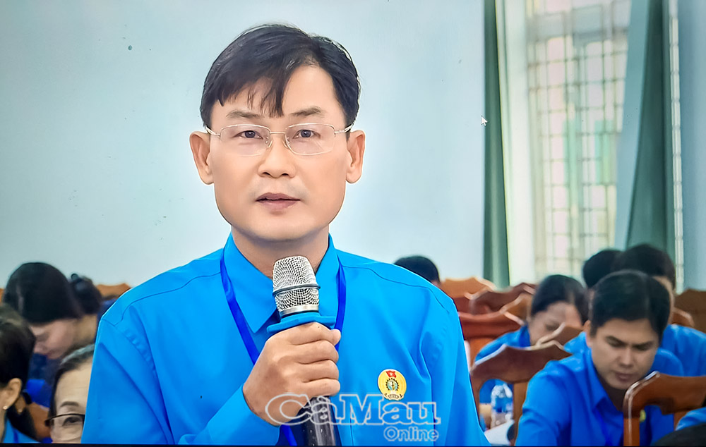 Đồng chí Nguyễn Quốc Danh, Phó Tổng Biên tập, Chủ tịch CĐCS Báo và Phát thanh, Truyền hình Cà Mau, phát biểu thảo luậi tại Đại hội.