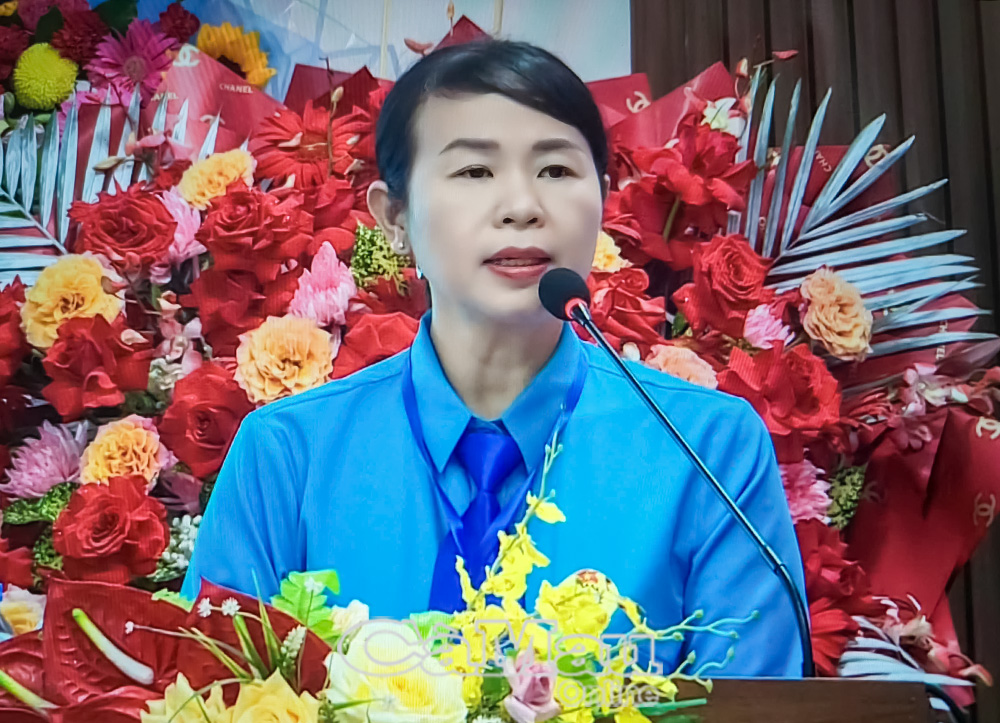 Đồng chí Trịnh Tuyết Ngọc, Chủ tịch Công đoàn phường An Xuyên phát biểu quyết tâm thực hiện nhiệm vụ trọng tâm trong nhiệm kỳ mới.