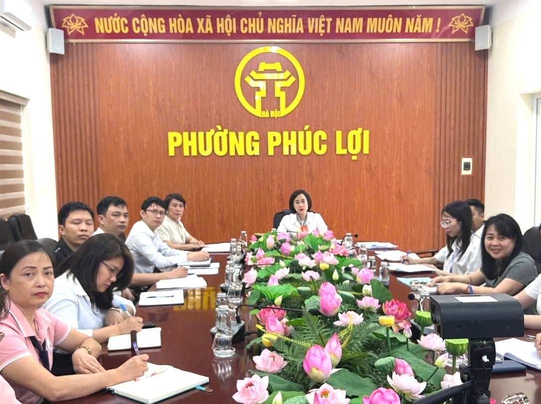Cuộc họp được kết nối trực tuyến từ điểm cầu UBND thành phố tới điểm cầu của UBND các phường, xã.