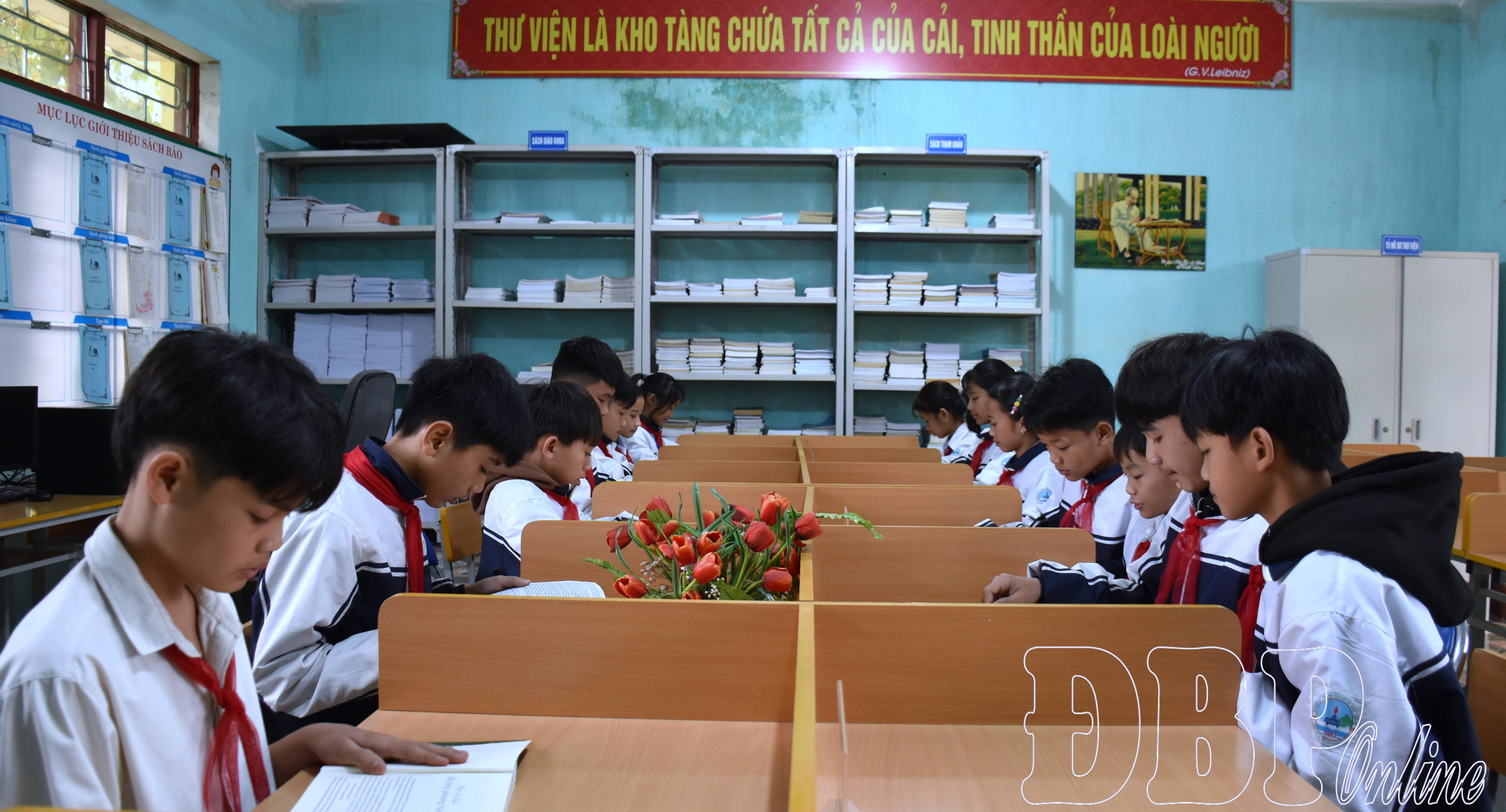 Học sinh Trường THCS Ẳng Cang (xã Mường Ảng) đọc sách tại thư viện nhà trường.