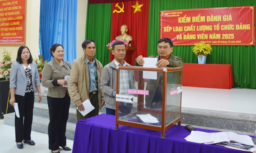 Chi bộ tổ dân phố Hồng Sơn, phường Tân An bỏ phiếu đánh giá, xếp loại tổ chức đảng, đảng viên năm 2025.