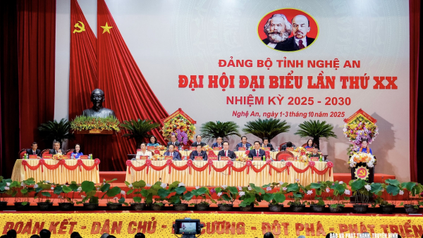 Sáng 2/10, Đại hội đại biểu Đảng bộ tỉnh Nghệ An lần thứ XX, nhiệm kỳ 2025 - 2030 khai mạc trọng thể tại Nhà Văn hóa Lao động tỉnh. Tham dự Đại hội có 500 đại biểu chính thức, đại diện cho 200.579 đảng viên toàn Đảng bộ.