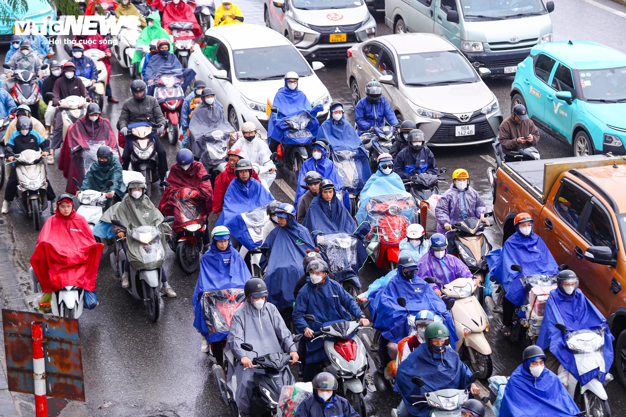 Trong cơn mưa phùn kéo dài, việc đi lại của người dân càng thêm vất vả, nhiều phương tiện phải di chuyển chậm để đảm bảo an toàn.