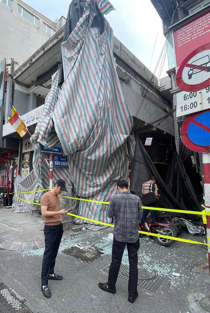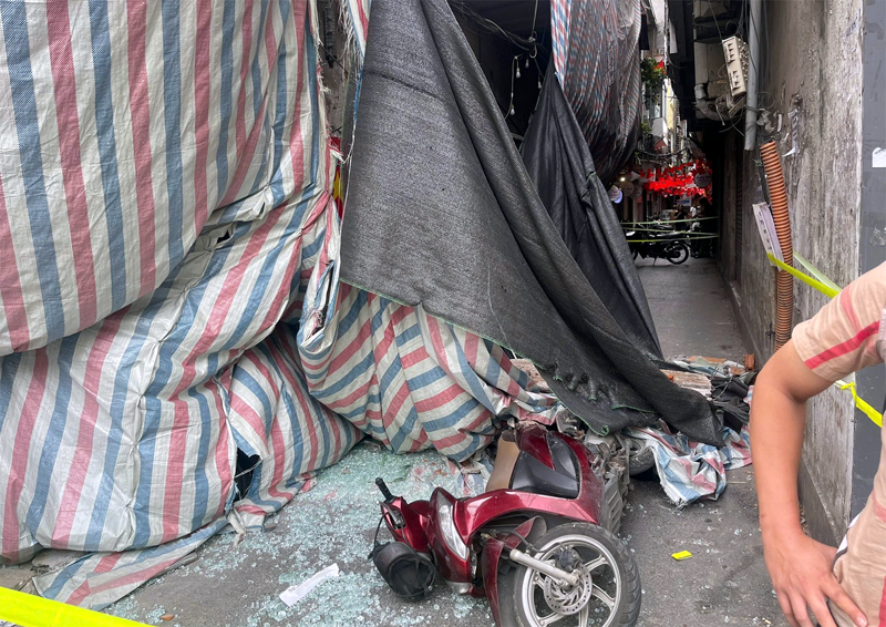 Cú va chạm khiến tấm bạt cùng một số vật liệu xây dựng bất ngờ rơi xuống, trúng vào người đi đường. Cả hai nạn nhân ngã xuống đường, bị thương nặng và được lực lượng chức năng đưa đi cấp cứu.