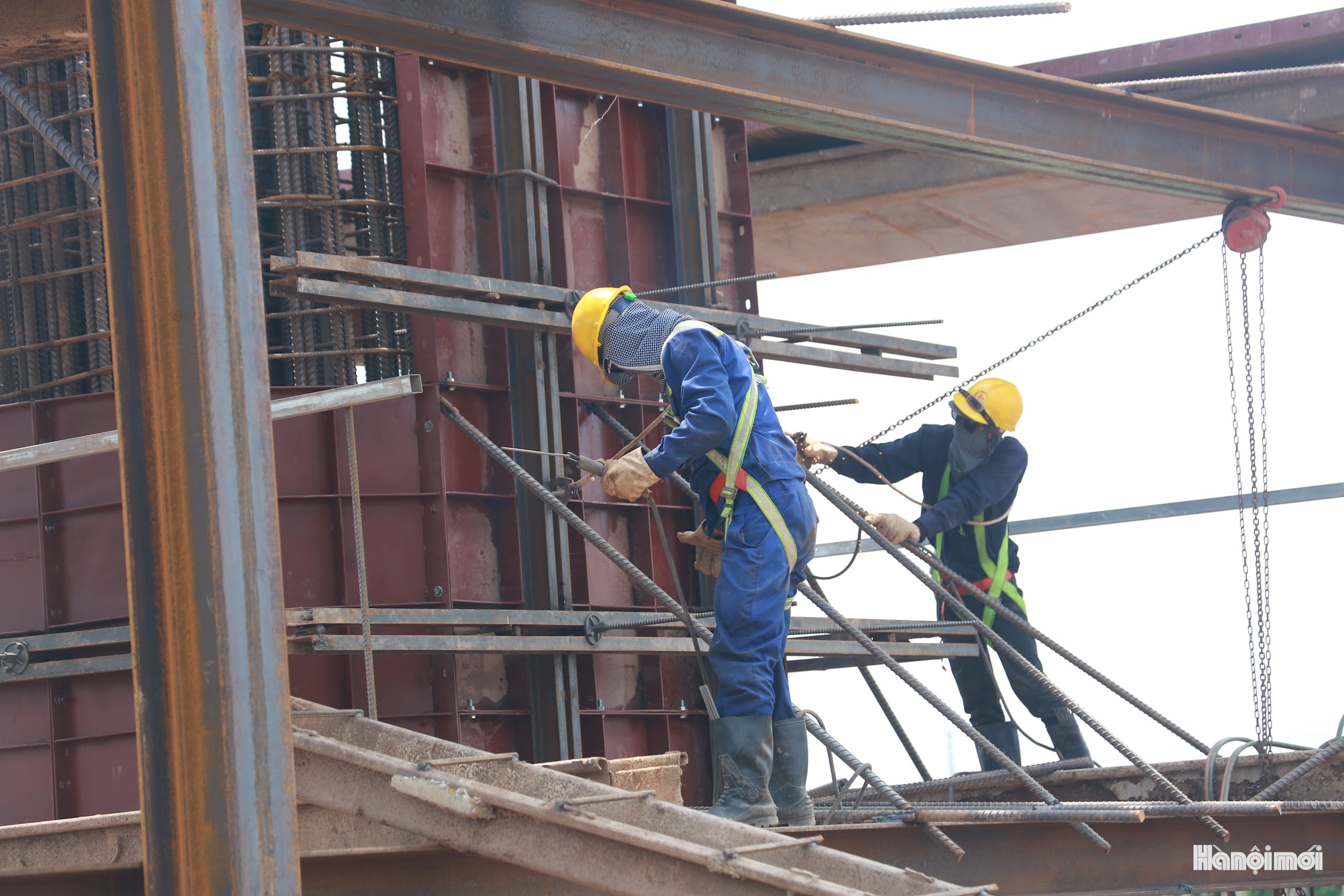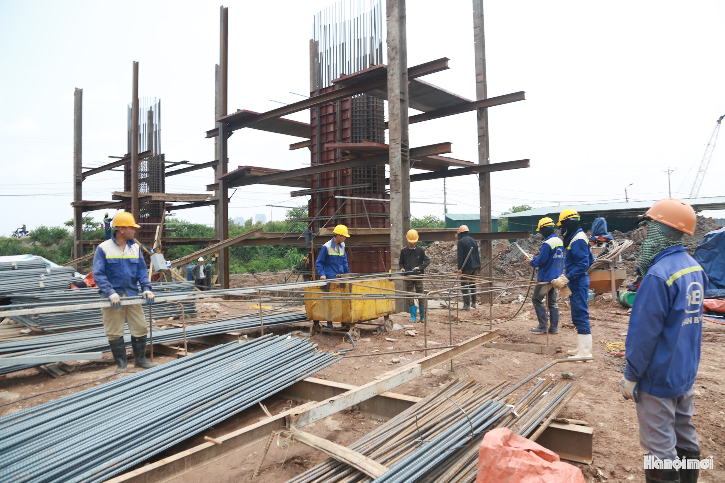 Hoạt động thi công cầu Ngọc Hồi và 2 đường dẫn diễn ra nhộn nhịp, nghiêm túc, bảo đảm các yêu cầu về kỹ thuật và an toàn lao động.