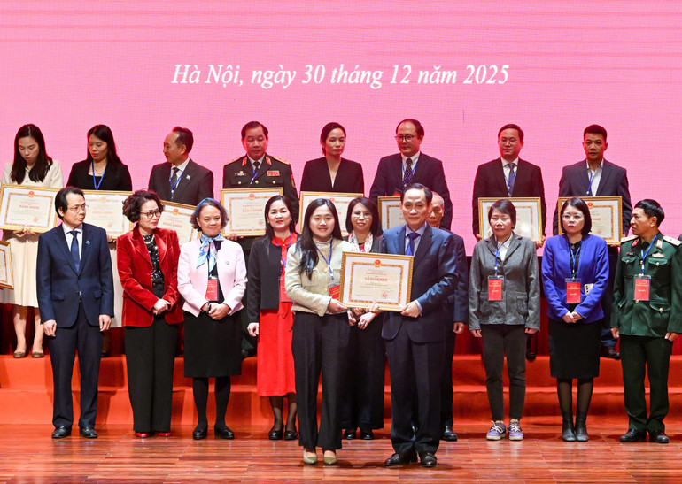 Tại Hội nghị, Đảng ủy Bộ Ngoại giao tặng 39 Bằng khen cho các tập thể và cá nhân có thành tích tiêu biểu trong công tác đối ngoại nhân dân năm 2025. (Ảnh: Duy Linh)