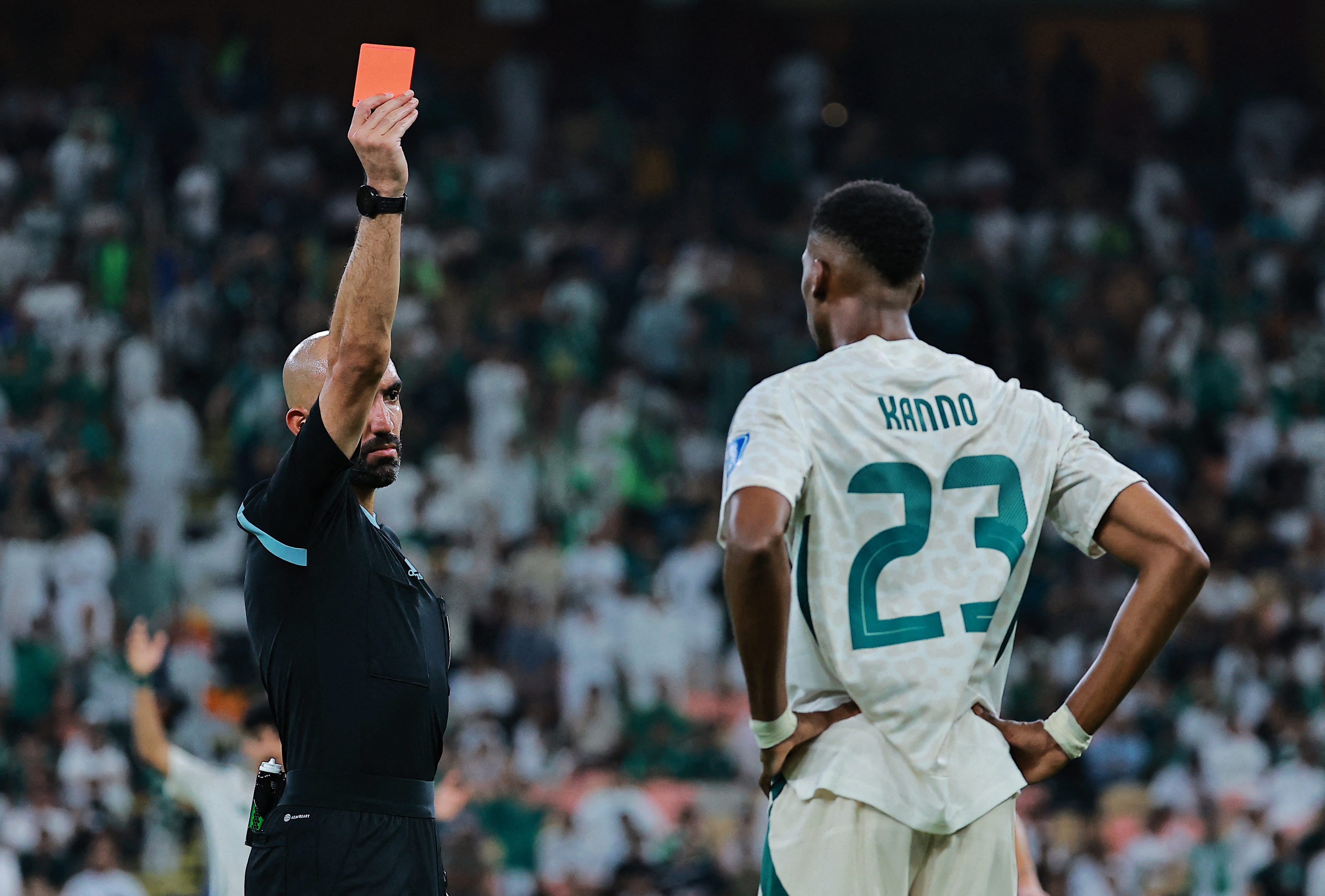 Không dừng lại ở đó, trọng tài 38 tuổi này còn mạnh tay rút hai thẻ đỏ cho tuyển Saudi Arabia, truất quyền thi đấu của cầu thủ Mohamed Kanno và một thành viên ban huấn luyện đội chủ nhà vì lỗi phản ứng.