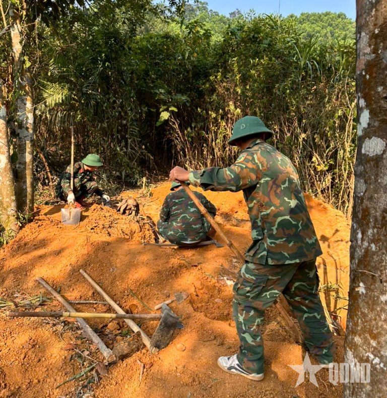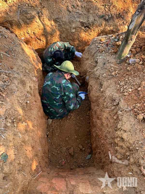 Nhận được nguồn tin do nhân dân địa phương cung cấp, từ ngày 1-4 đến 10-4-2026, Đội quy tập 584 đã tổ chức lực lượng tiến hành khảo sát thực địa, xác minh thông tin một cách chặt chẽ. Với tinh thần trách nhiệm cao, cán bộ, nhân viên Đội quy tập 584 đã phối hợp chặt chẽ với cấp ủy, chính quyền địa phương, huy động lực lượng, phương tiện tổ chức tìm kiếm, quy tập được 3 hài cốt liệt sĩ tại khu vực thôn XiPa, xã Đắkrông, tỉnh Quảng Trị. Các hài cốt được phát hiện ở độ sâu khoảng 1,3m, được quấn trong võng dù đã phân hủy. Qua quá trình quy tập, các hài cốt liệt sĩ còn lại chủ yếu là răng và xương ống chân và di vật được tìm thấy như: Võng dù, tăng, cúc áo bộ đội, gương, kẹp tóc, cao sao vàng, quần lót bộ đội…