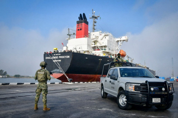 Chiếc tàu Challenge Procyon chở dầu lậu bị canh giữ bởi lính đặc nhiệm hải quân Mexico.