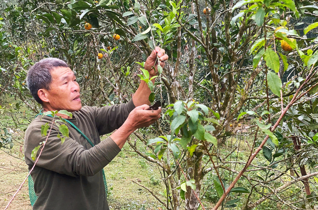 Ông Nông Thanh Bằng, xóm Pác Bó phát triển kinh tế từ vườn cây ăn quả.