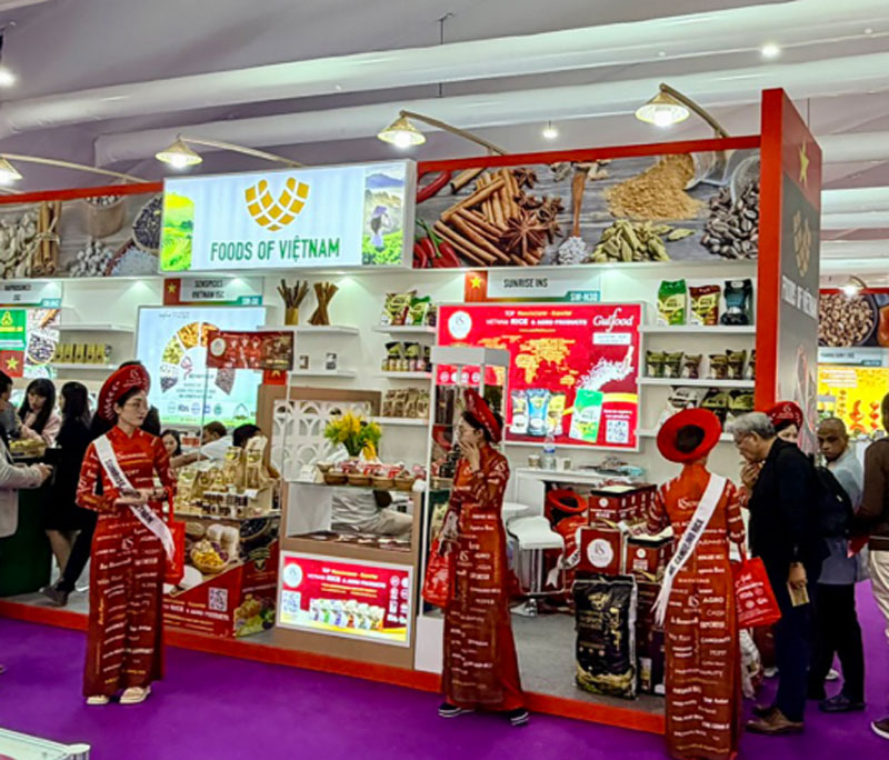 Khu trưng bày, giới thiệu nông sản Việt Nam tại Hội chợ quốc tế về thực phẩm và đồ uống - Gulfood Dubai 2026. Ảnh: NGỌC YẾN