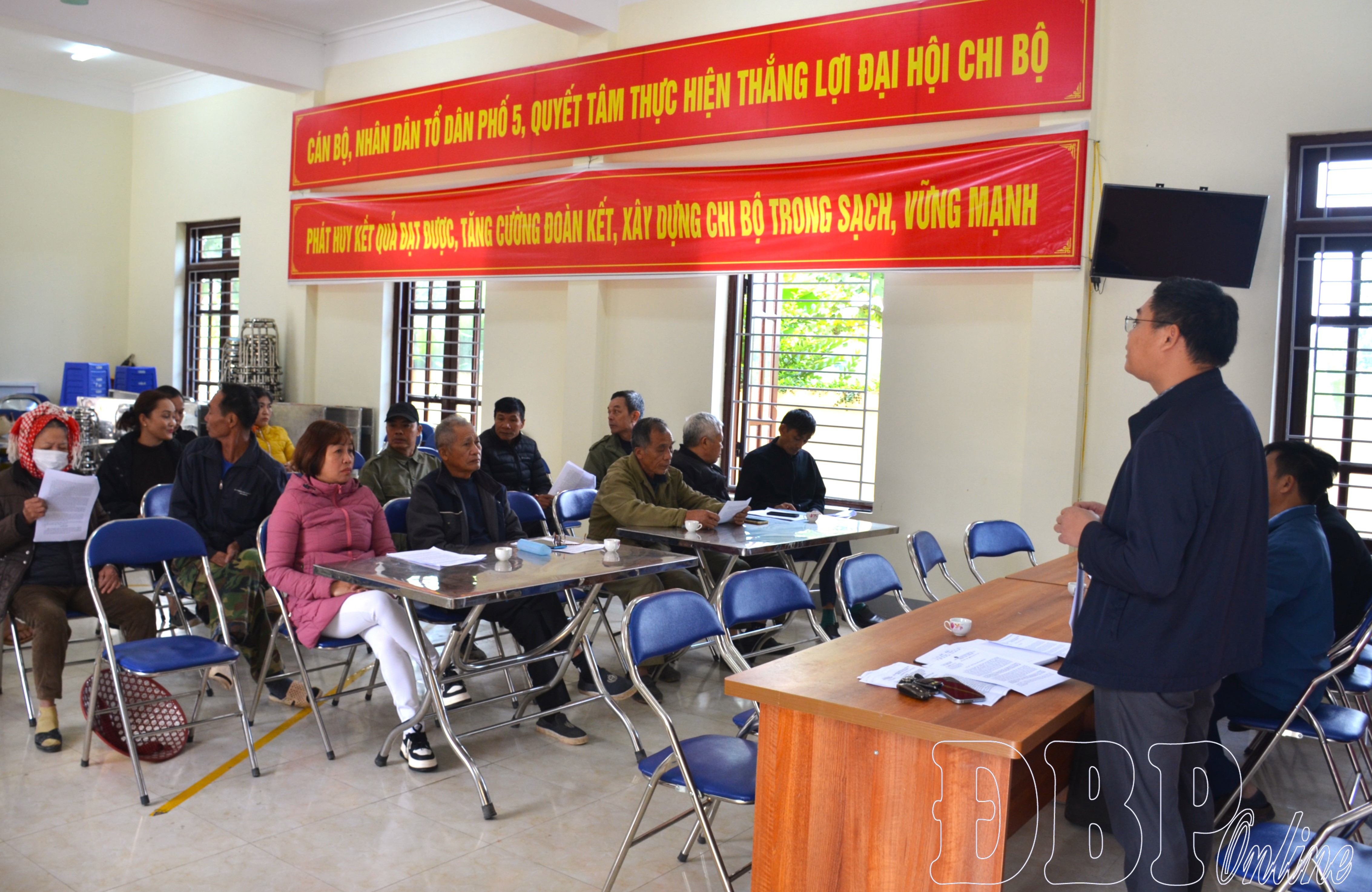 Đại diện Ban Quản lý Dự án các công trình nông nghiệp và phát triển nông thôn đối thoại trực tiếp với một số hộ dân Tổ dân phố 5 (phường Điện Biên Phủ) về Dự án Quản lý đa thiên tai lưu vực sông Nậm Rốm.