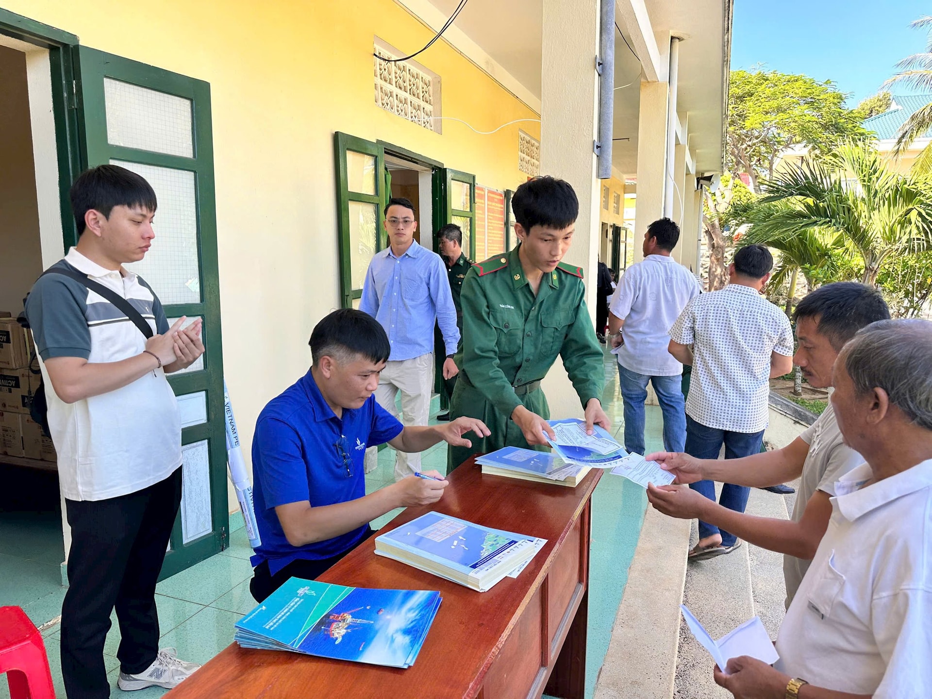 Phát tài liệu tuyên truyền cho các chủ thuyền tại Đặc khu Phú Quý
