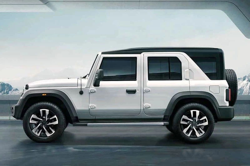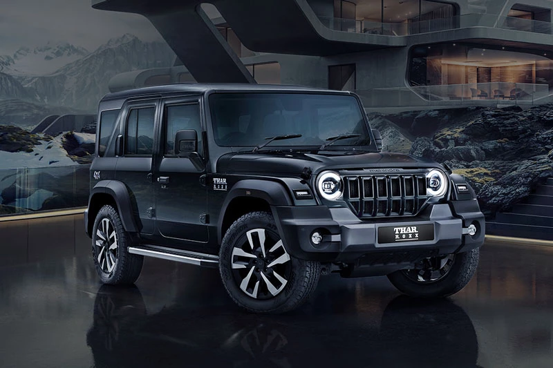 Thar Roxx vẫn giữ nguyên DNA “chiến binh off-road” của dòng Thar truyền thống với dáng hình hộp khỏe khoắn, khung gầm cao và những đường nét đậm chất cơ bắp. Tuy nhiên, phiên bản 5 cửa mới có chiều dài cơ sở được kéo dài lên 2.450 mm, giúp nội thất rộng rãi hơn đáng kể cho cả hành khách và khoang hành lý. Xe có kích thước tổng thể dài 3.985 mm, rộng 1.820 mm, cao 1.844 mm, mang đến cảm giác vững chãi và cân đối.