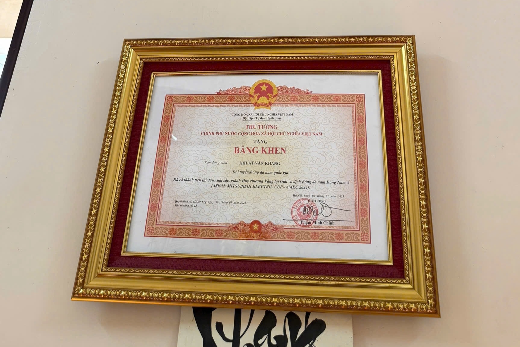 Khuất Văn Khang nhận bằng khen của Thủ tướng vì đã có thành tích xuất sắc tại AMEC 2024. Ảnh: Châu Sa.