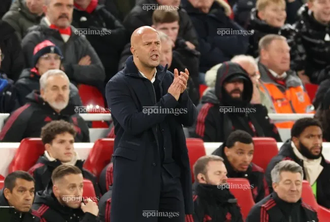HLV Arne Slot đã mỉm cười sau 6 tuần không biết thắng. Ảnh: EPA.