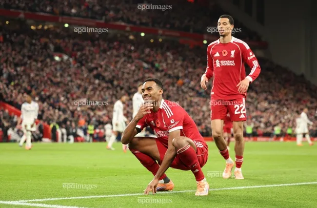 Ryan Gravenberch ăn mừng bàn thắng cho The Reds. Ảnh: EPA.