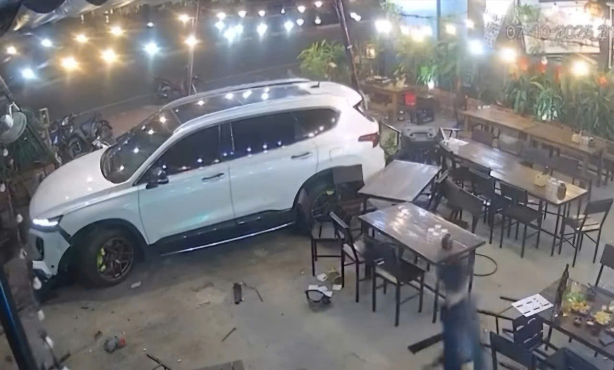 Hiện trường vụ lao xe vào quán nhậu tông người tử vong. Ảnh cắt từ Clip