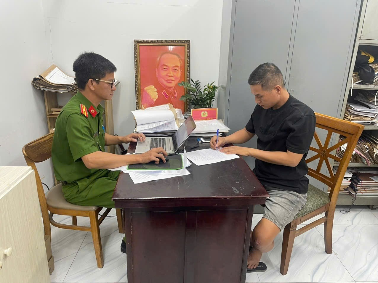 Qua nhiều biện pháp nghiệp vụ, phát hiện nơi lẩn trốn của đối tượng, Công an phường Long Bình đã vận động đối tượng ra đầu thú. Trước sự kiên trì vận động của Công an phường, Phạm Công Nhật đã tự nguyện ra trình diện cơ quan chức năng sau hơn 1 năm lẩn trốn.