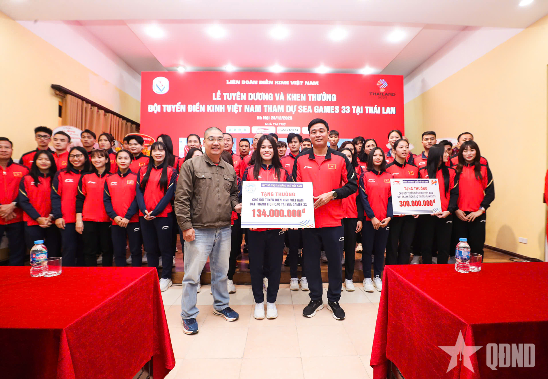 Phát biểu tại buổi lễ, ông Nguyễn Đức Nguyên, lãnh đạo đội tuyển điền kinh Việt Nam tại SEA Games 33 cho biết: “Ban đầu chúng tôi đăng ký giành từ 12 đến 14 huy chương vàng, nhưng cuối cùng giành được 12 huy chương vàng vì nhiều lý do. Trong đó, một số vận động viên không vượt qua được áp lực tâm lý hoặc gặp chấn thương bất ngờ. Thành công lớn nhất với điền kinh Việt Nam ở SEA Games 33 là đã giới thiệu một lứa vận động viên trẻ tài năng, khi có tới 17 vận động viên dưới 20 tuổi. Trong thời gian tới, điền kinh cần áp dụng tuyển chọn chuẩn đầu vào vận động viên dựa trên phân tích bằng công nghệ, chứ không theo cảm tính như trước”.