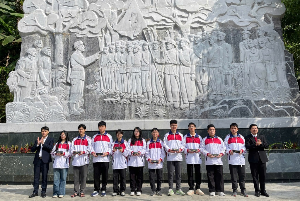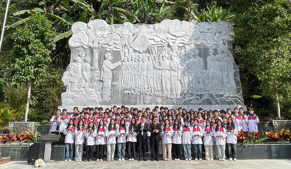 Tiếp đó, các thầy cô giáo và học sinh cùng tham quan địa điểm thành lập Đội Việt Nam Tuyên truyền giải phóng quân tại Khu di tích Quốc gia đặc biệt rừng Trần Hưng Đạo.