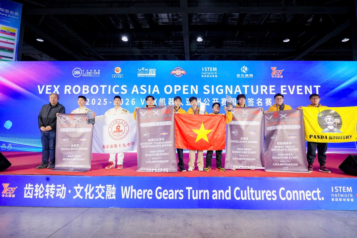 Giải đấu VEX Robotics châu Á mở rộng 2025 được tổ chức từ ngày 18/12–21/12 tại Bắc Kinh, quy tụ hơn 3.500 học sinh thuộc 600 đội thi đến từ gần 30 quốc gia và vùng lãnh thổ. Trong một sân chơi có tính cạnh tranh cao, nơi các đội mạnh đến từ Mỹ, Trung Quốc, Hàn Quốc, Singapore… đều góp mặt, thành tích của đội tuyển Việt Nam được đánh giá là đột phá và mang ý nghĩa lịch sử.