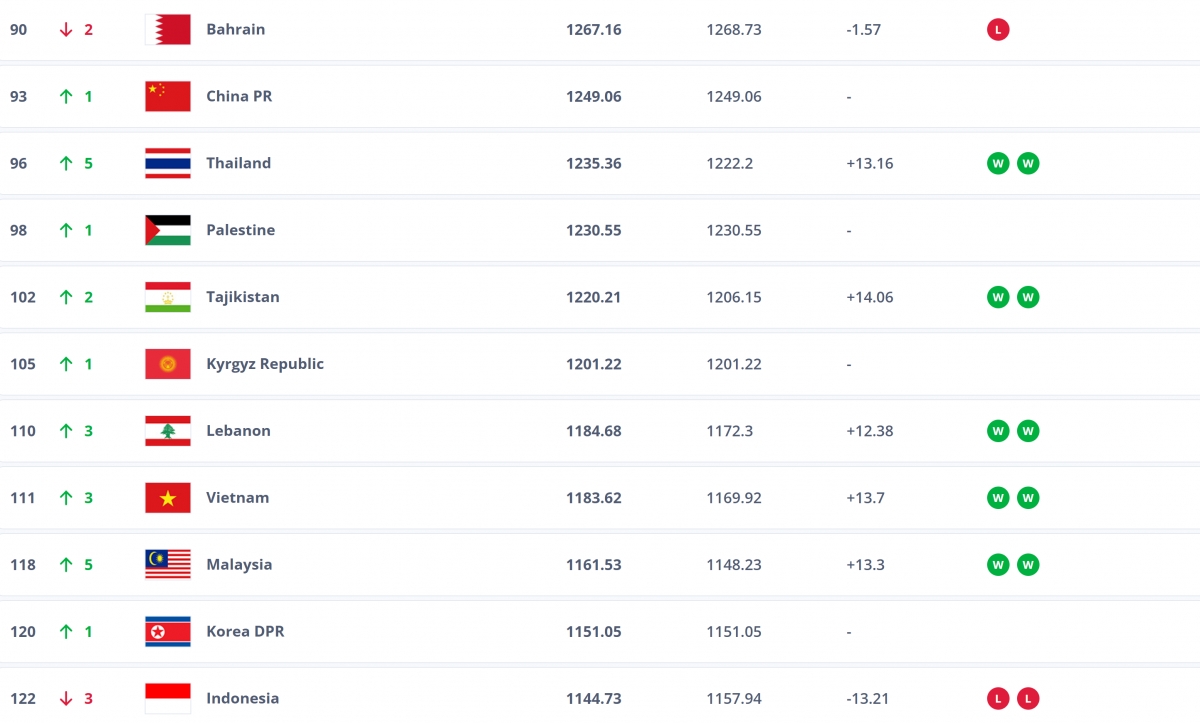 Hai chiến thắng liên tiếp giúp Malaysia xây chắc ngôi đầu bảng F, đồng thời rộng cửa giành vé dự vòng chung kết Asian Cup 2027. Hiện tại, Malaysia có 12 điểm đang hơn tuyển Việt Nam 3 điểm.